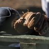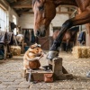 蹄鉄の交換をしているおじさんと馬さん かわいい